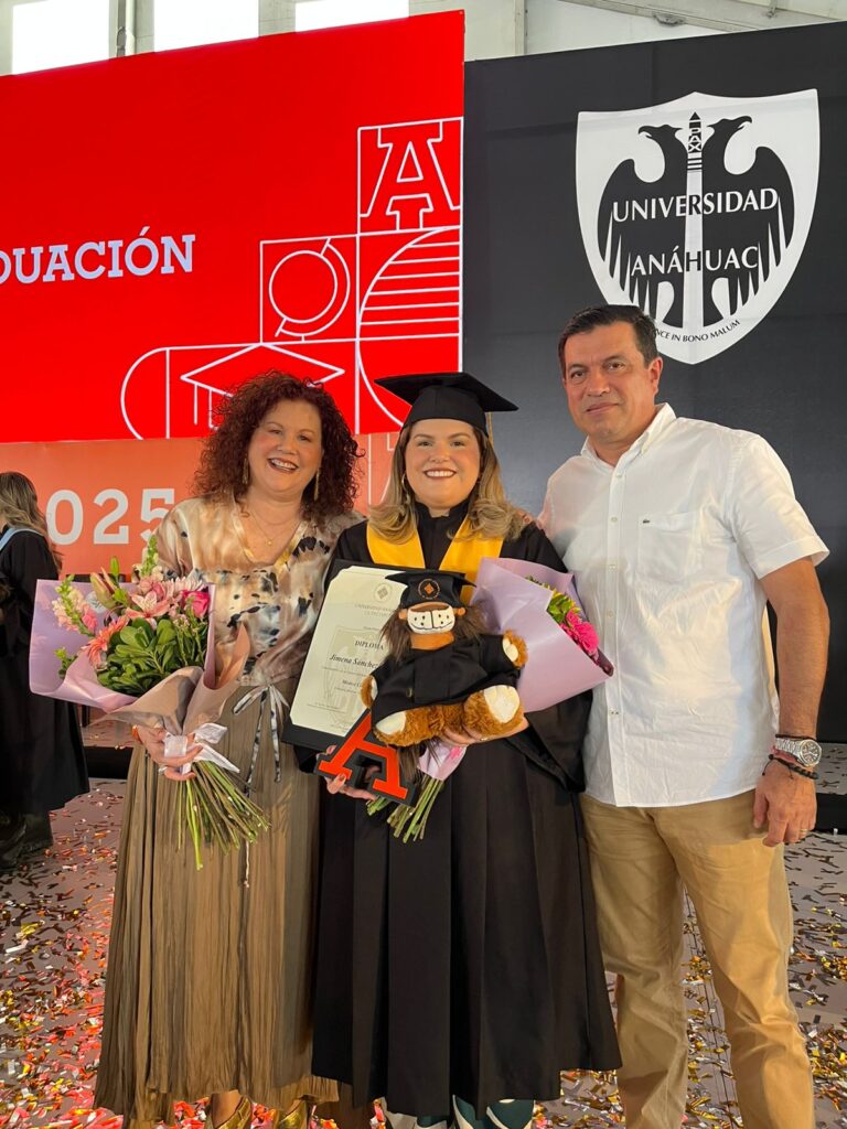 Enviamos una felicitación muy especial a Jimena Sánchez López, quien recientemente culminó con éxito sus estudios en la Licenciatura de Médico Cirujano por la Universidad Anáhuac Querétaro. Este gran logro es motivo de orgullo y celebración para su familia, en especial para sus padres, Laura Martha López de Sánchez y Juan Sánchez; así como para sus hermanos, Mariana, Juan Emiliano y Valentina, quienes la han acompañado con amor y admiración en cada paso de su camino. ¡Muchas felicidades, doctora Jimena, por alcanzar esta meta tan importante!
