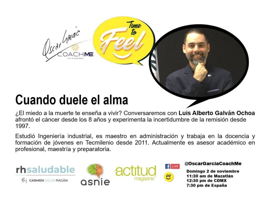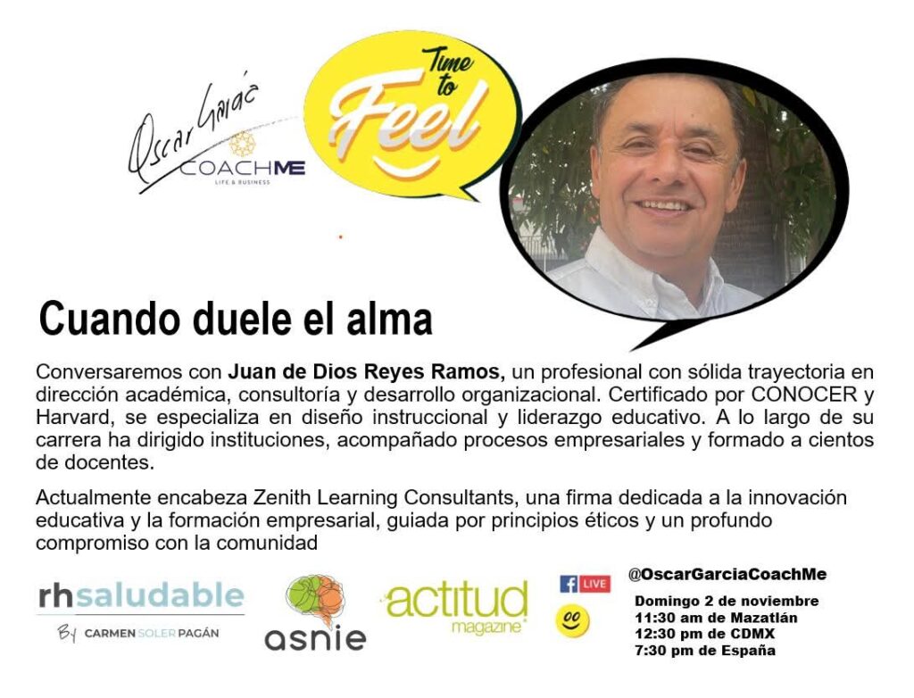 Después de una pausa, Time to Feel vuelve el día de hoy con un episodio que nos invita a mirar de frente lo invisible, “Cuando duele el alma”. ¿Qué pasa cuando el cuerpo resiste, pero el alma se quiebra? ¿Qué nos enseñan el miedo, la perdida y la incertidumbre? En esta entrega, dos voces profundamente humanas, Luis Alberto Galván Ochoa y Juan de Dios Reyes Ramos, comparten sus caminos de transformación con una honestidad que conmueve y reconcilia. Guiados por el Coach Oscar García, este episodio nos recuerda que hablar del alma también es sanar, y que el dolor, cuando se nombra, puede convertirse en fuerza. Una conversación intima, luminosa y necesaria que nos invita a reconectar con lo esencial. Porque sentir también es un acto de valentía. ¡No te lo pierdas! 11:30 am de Mazatlán, 12:30 pm de CDMX, 7:30 pm de España.